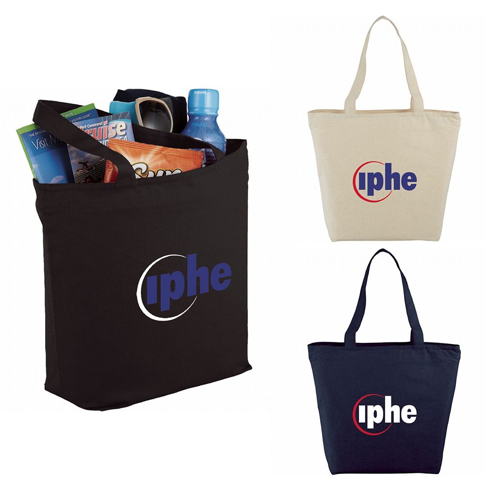 #SM-7235BK 8 oz. Cotton Maine Zippered Tote - Black