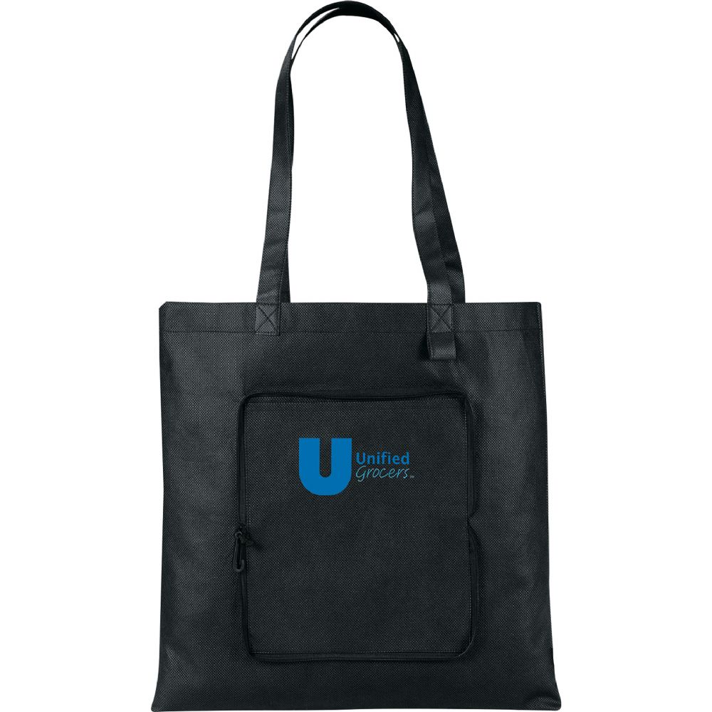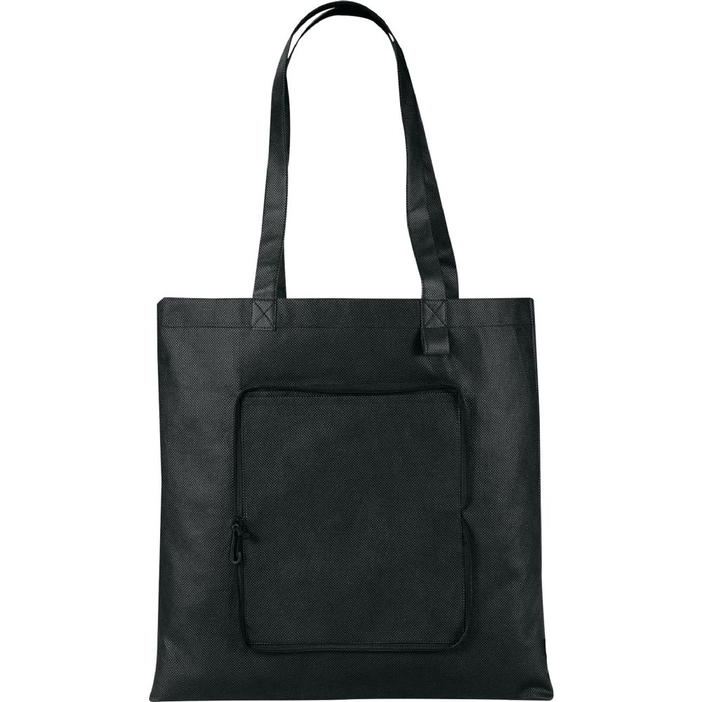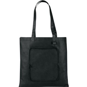 #2150-40BK Foldable Non-Woven Convention Tote - Black Solid